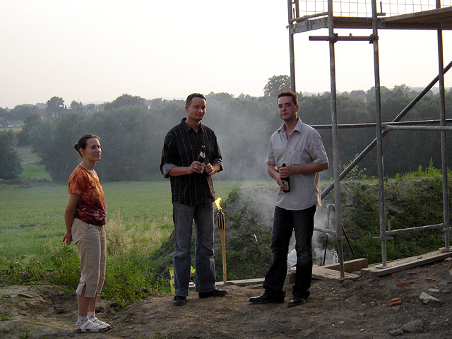 Fachsimpelei am Gerüst; Sonja, Rene und Tido
