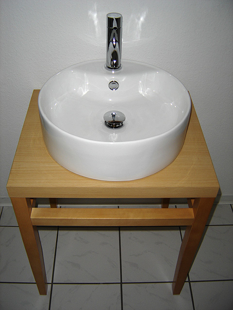 So steht unser neuer Waschtisch im Wohnzimmer und mahnt uns zur Eile...