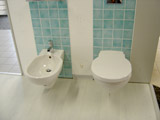 So eine Versteigerung ist recht interessant aber es zog und zog sich. Mit unseren Sitznachbarn sind wir dabei etwas ins Gespräch gekommen (viele Grüße, wenn sie dieses lesen); sie bauen gerade ein Haus um und suchten auch noch das ein oder andere Objekt, so wurde die Zeit etwas kurzweiliger. Dann kamen auch noch Dinge unter den Hammer, bei denen man vermutete, daß diese wie Blei im Regal liegen würden (z.B. häßliche Badematten); aber gerade diese Sachen gingen weg wie warme Semmeln. Zwischendurch gab es noch eine Pause und auch unsere Nachbarn ersteigerten ihr erstes Objekt. Da die Stühle sehr unbequem wurden und es absehbar war, daß die Aktion noch etwas länger dauern sollte, schickte ich Eike zum Einkaufen mit dem Versprechen, keine Dummheiten zu machen (also ich gab das Versprechen, nicht Eike). Das Bieterglück verließ mich aber gleichzeitig mit ihr und bis zu ihrer Rückkehr konnte ich nichts unserem Hausstand zufügen. Das änderte sich bei ihrer Rückkehr und so erstanden wir für das Obergeschoss WC und Bidet. Alles komplett mit Armatur, Brille und Drücker.